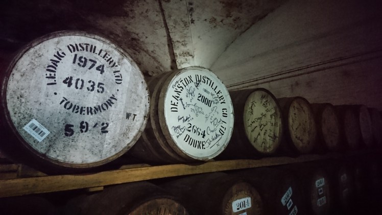 토버모리 증류소의 숙성고는 과거 인수 & 합병 과정에서 다른 용도로 바뀌었기 때문에 모든 뉴 메이크 스피릿은 같은 모회사 소유의 딘스톤 증류소로 운송된다. 딘스톤의 시설에서 알코올 도수 약 63.5%로 가수된 후 통입을 준비한다. 대부분 버번 배럴 및 혹스헤드가 사용되지만 다양한 캐스크를 활용하기도 한다.