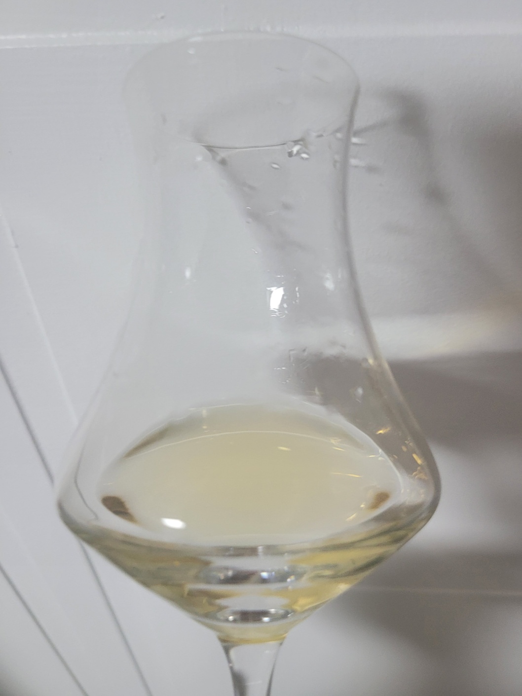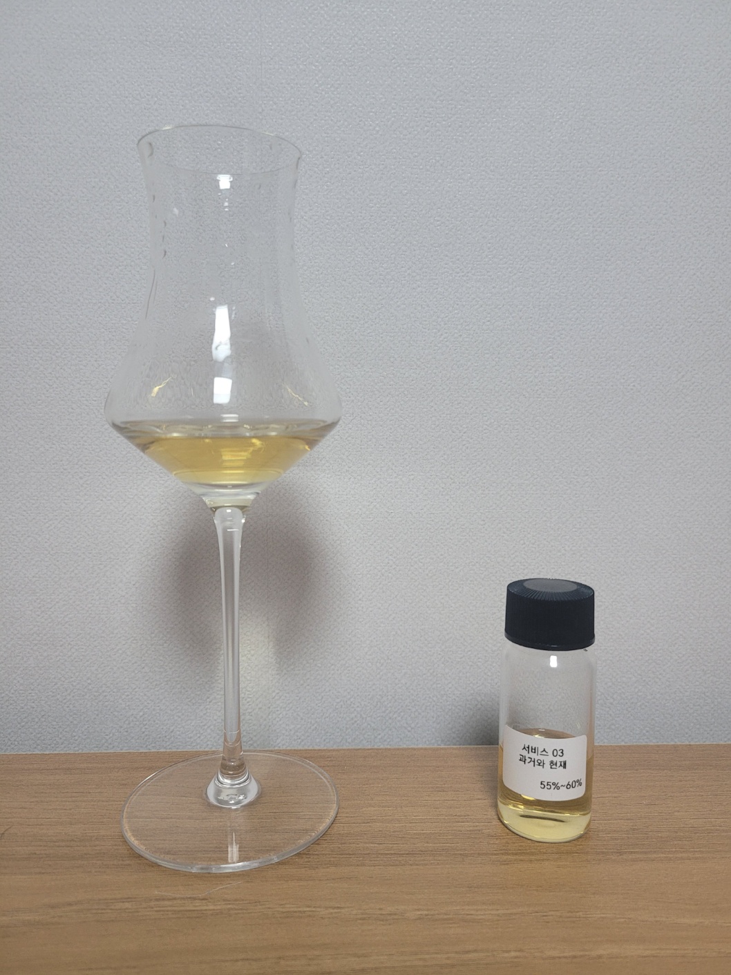 목 넘김 및 여운: 도수 대비 상당히 부드러운 목 넘김이다. 볶은 곡물의 고소함과 새하얗게 탄 재 뉘앙스의 스모키가 비강을 가득 매운다. 레몬의 시트러스가 산발적으로 터지며 바닐라 단내와 레몬그라스의 향긋함 그리고 하얀 꽃내음이 은은하게 남는다. 혀에는 곡물의 단맛이 빠르게 사라지고 짠맛과 감칠맛 그리고 귤락의 씁쓸함이 나타난다. 다소 짧은 여운이다.