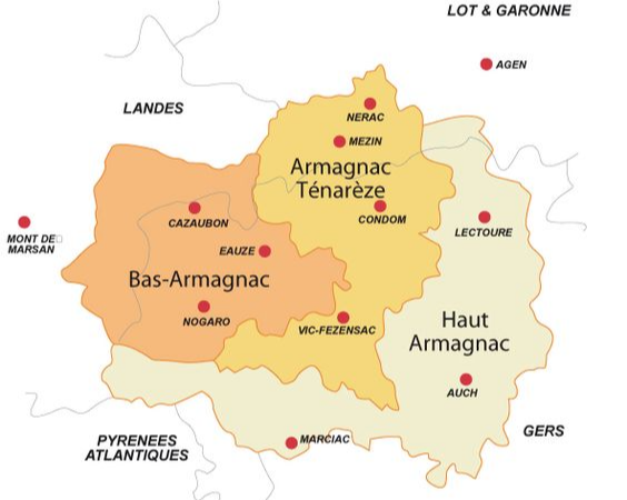 옛 가스코뉴(Gascogne) 지방에서도 피레네 산맥 기슭의 아두르 강과 가론 강 사이에는 아르마냑(Armagnac)이라 불리는 지역이 위치해 있다. 15 ~ 17세기서부터 거래되기 시작한 이곳의 포도 브랜디는 지역명을 따라 아르마냑이라고 불리었다. 이후 1936년 원산지 보호 명칭(Appellation d’Origine Contrôlée) 지위를 획득하면서 법적으로 보호받을 수 있게 되었다. 법령에 따라 공식 생산 지역은 “Gers”, “Landes”, “Lot-et-Garonne” 세 구역이 인접한 곳으로 지정되었다.