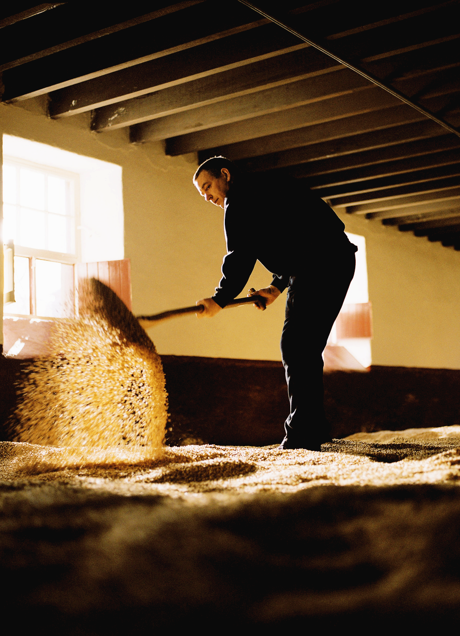 전체 몰트 수요량의 5 ~ 15%는 플로어 몰팅을 통해 생산한다. 약 1,000에이커 규모의 “Balvenie Mains” 농장을 소유한 와이즈맨(Wiseman) 가문의 던컨(Duncun)과 협력하여 보리를 공급받는다.