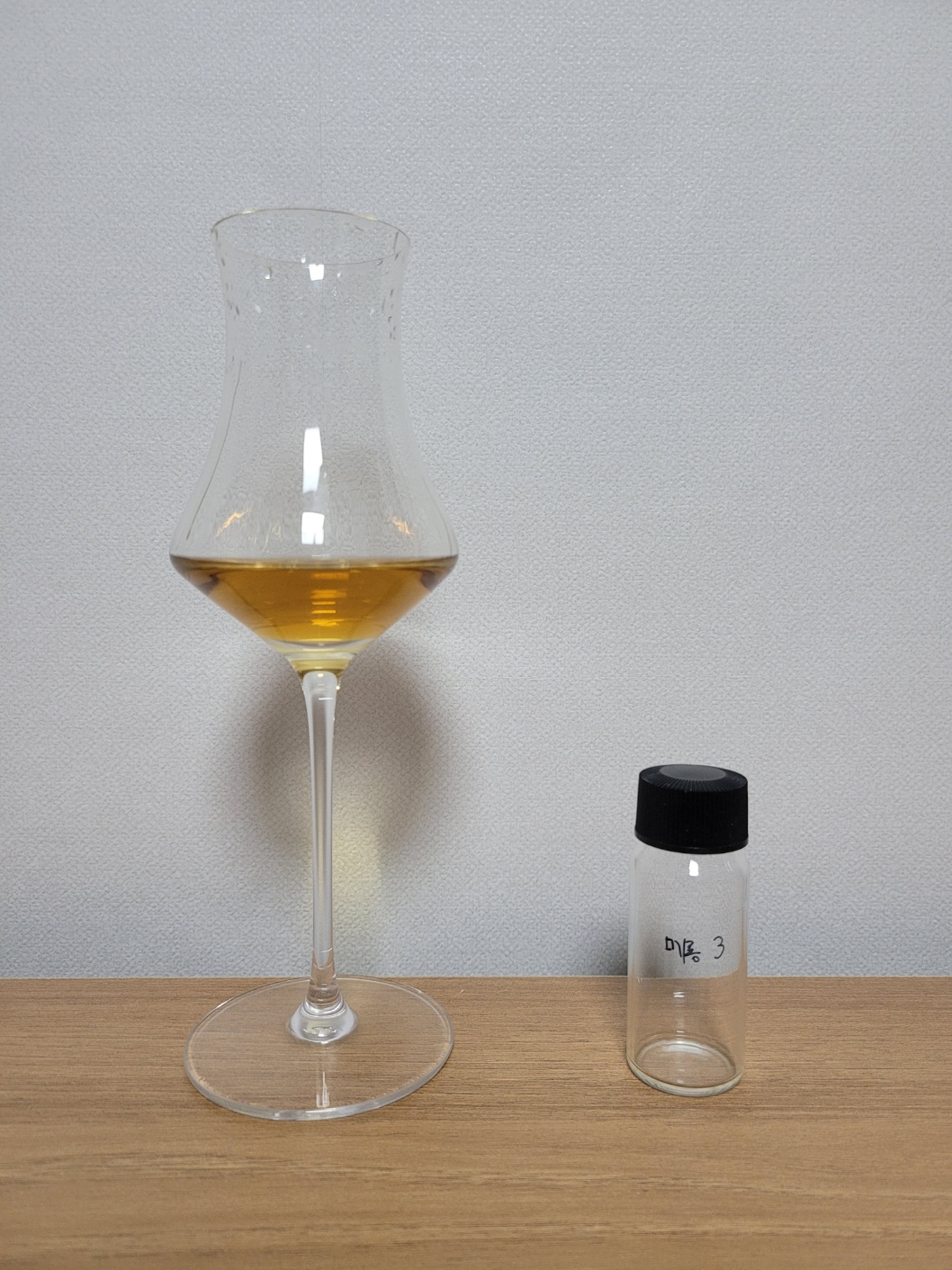 목 넘김 및 여운: 부드러운 목 넘김이다. 계피, 감초, 흑후추, 마른 허브, 담뱃잎, 세무 가죽 향이 비강을 잠깐 메웠다가 가라앉고 나무껍질과 은은한 스모키가 나타난다. 혀에는 단맛 일절 없이 떫은맛과 쓴맛이 강하고 길게 지속된다. 표고 우린 물의 감칠맛이 끝에 가볍게 돈다.