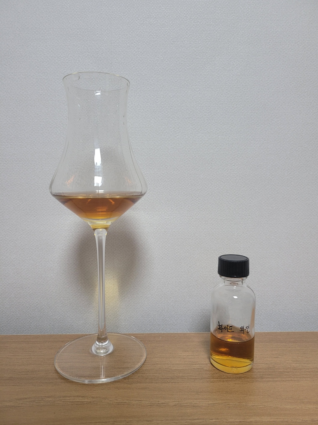향: 알코올의 존재감은 있으나 튀지는 않는다. 불편하지 않을 정도의 미미한 황(Sulfur)이 있다. 다크초콜릿, 모카번, 가죽, 코피코 커피캔디, 홍삼 캔디, 수분감 없는 건포도, 반건조 무화과 등이 지배적이다. 셰리 와인 캐릭터보다는 바싹 마른듯한 오크의 영향이 보다 강하게 느껴진다. 피트가 아닌 보리 태운내가 잡히며 캐러멜라이징 한 양파의 향이 있어 브라운 에일을 연상케 한다. 더티한 흙내음, 마른 허브, 담뱃잎, 호두, 아몬드, 흑후추, 살짝 그을린 계피스틱의 스모키가 올라와 매우 드라이한 향조가 지속된다. 끝에 구수한 누룽지 사탕 향이 기분 좋게 맴돈다.