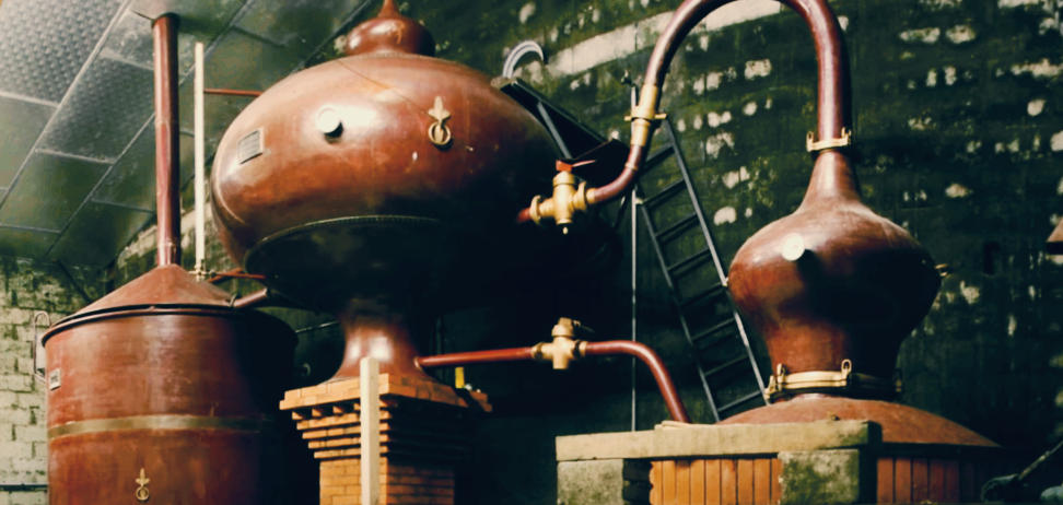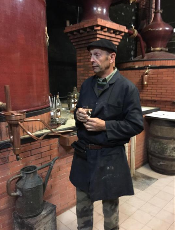 증류소 내부에는 1976년서부터 사용해 온 2,500리터 용량의 샤랑테 팟 스틸(Alembic Charentais) 1쌍이 있다. VSOP와 같은 어린 꼬냑을 만들 때에는 “Lees”라고 불리는 포도 과육의 섬유질 또는 펄프를 포도주스와 혼합하여 증류하며 숙성 잠재력이 높은 꼬냑을 위해서는 복잡성을 더하기 위해 펄프를 더 추가하여 증류한다. 1차 증류 "Le Brouillis"와 2차 증류 "La Bonne Chauffe"를 거쳐 생성된 오드비는 셀러 마스터가 원하는 사양에 맞게 컷팅된다. 순백색의 오드비는 스테인리스 스틸 탱크에 저장되었다가 통입을 준비한다.